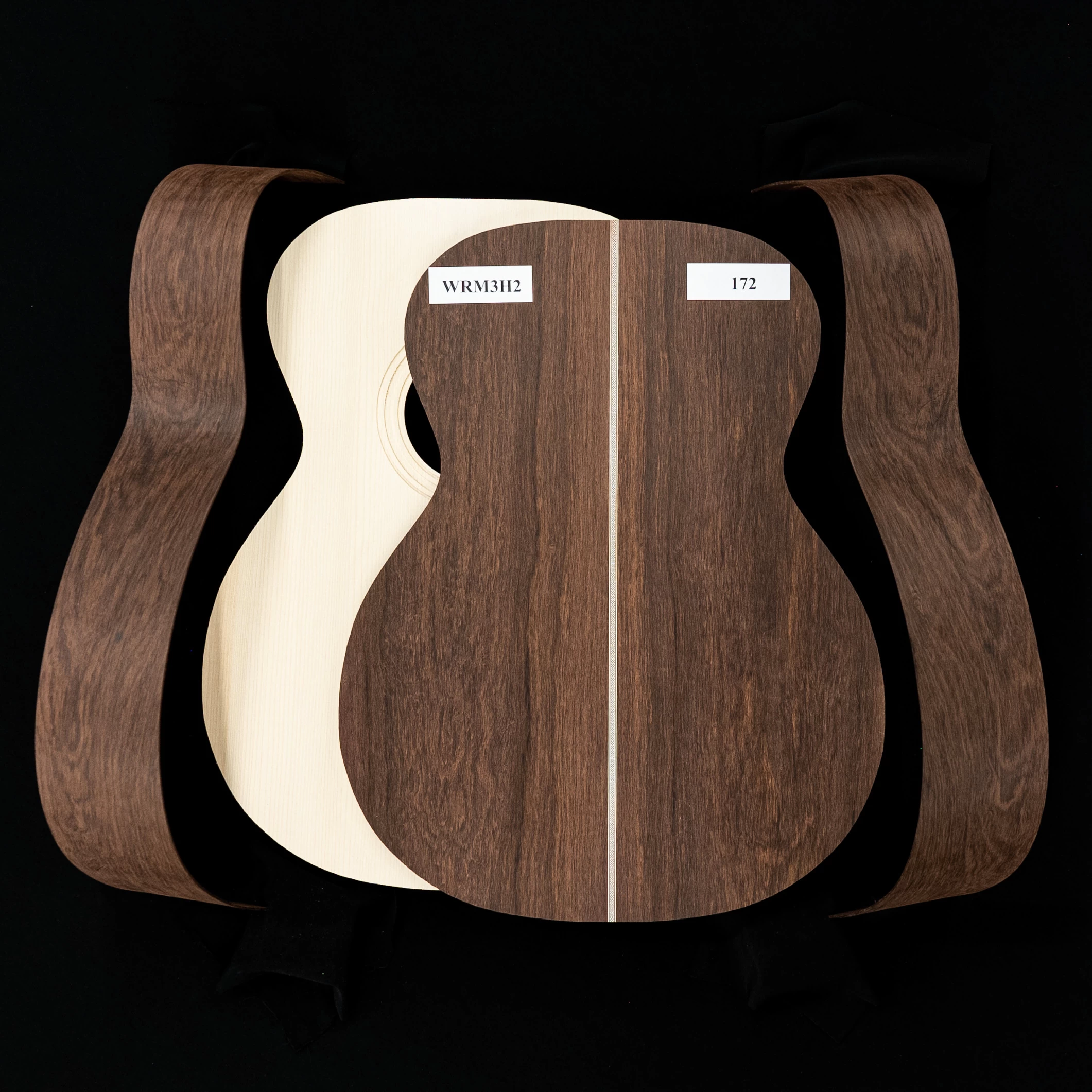 As you know, every piece of wood is unique, and has its own story to tell. When surveying these priceless guitars, we found some with elegant interlocking grain lines, and some that were wild and dynamic. For this reason we’ve photographed each of these kits individually—what you see pictured in the first image is the actual wood you’ll receive. And as a builder, we know you want to choose the wood that speaks to you.