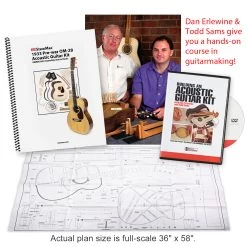 This kit also comes with our industry-best customer service. Our techs are just a phone call away if you have any questions throughout the build. We also include a 71 minute DVD that is a full course in guitar building and a full scale bracing plan and blueprint so you’ll have the knowledge and confidence to finish this build with ease.