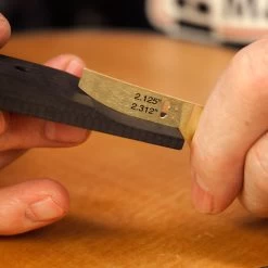 Here’s one of our favorite Dan Erlewine inspired tools! This brass multi-template is perfect for checking your progress when shaping a Martin-style “belly” bridge from scratch. The edges are contoured for matching the top arch, back roundover, and wing contours. StewMac’s Todd Sams suggested the handy locating holes for bridge pin spacings, too: modern 2-1/8″ and pre-war 2-5/16″ spreads.