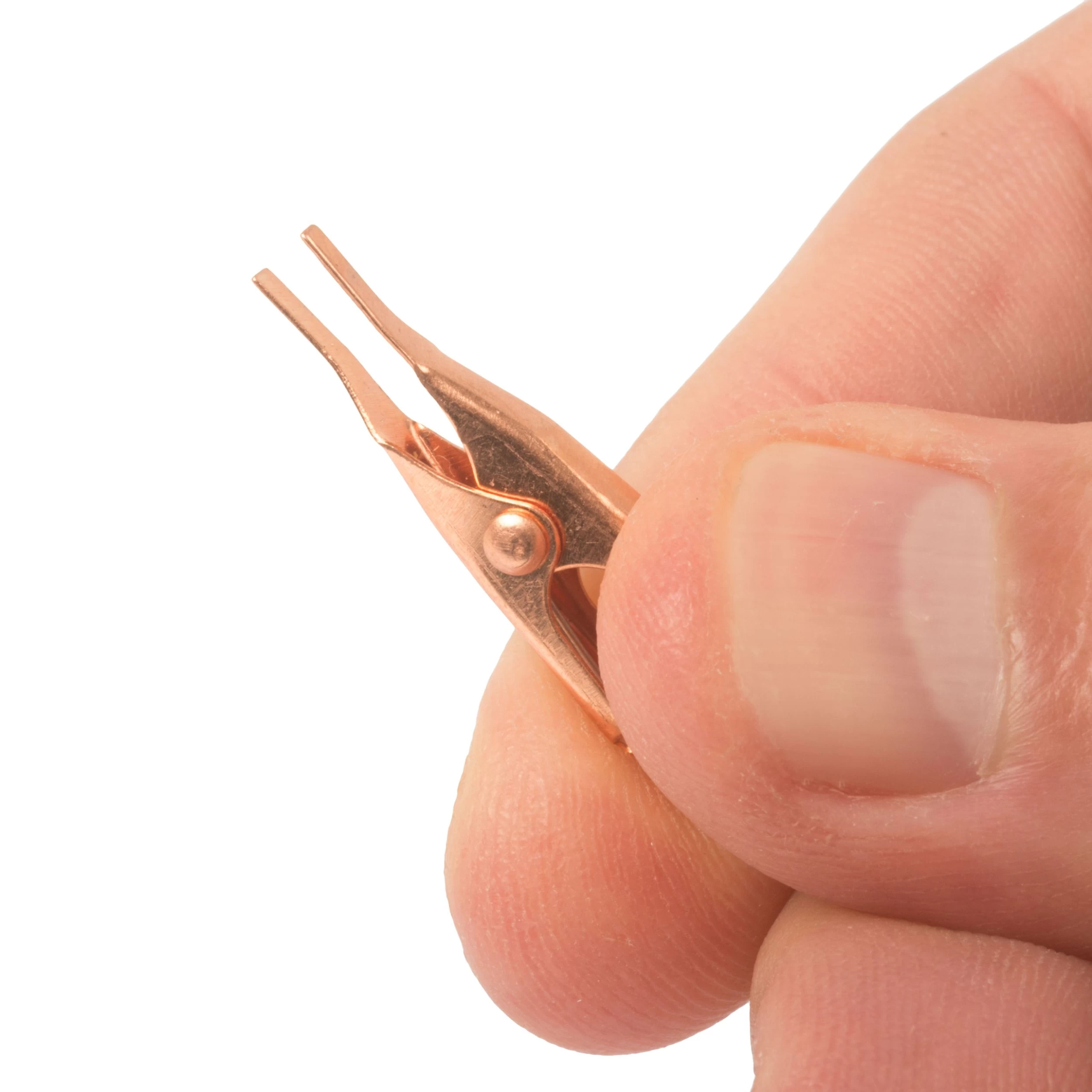 Each spring-loaded copper clip is approximately 1-1/8″ long (28.58mm). Package of 10.