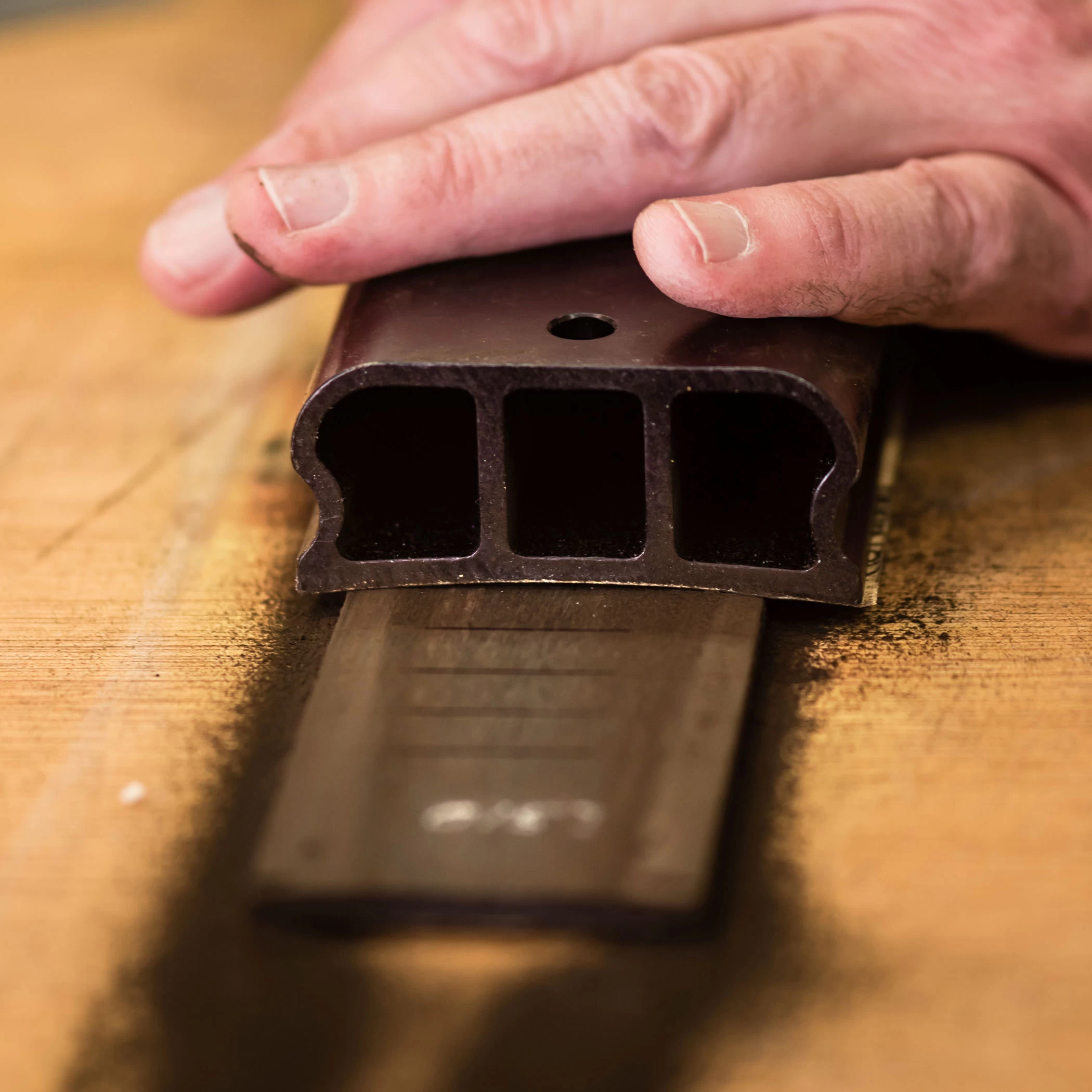 The new finish helps protect against corrosion and dirty hands in the shop. The bottom is precisely milled to radius, and unfinished so sandpaper will seat cleanly.