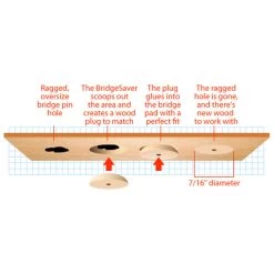 “This one is a real ‘must have’ for me… it’s the only method I’ve seen that really works to correct damaged bridge plate holes without compromising the originality or integrity of the guitar.”