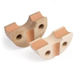 Solid hardwood with soft cork for finish protection. The Rock-n-Roller tilts to fit any neck angle. This Deluxe version adds extra support cauls and the ability to clamp to your workbench.