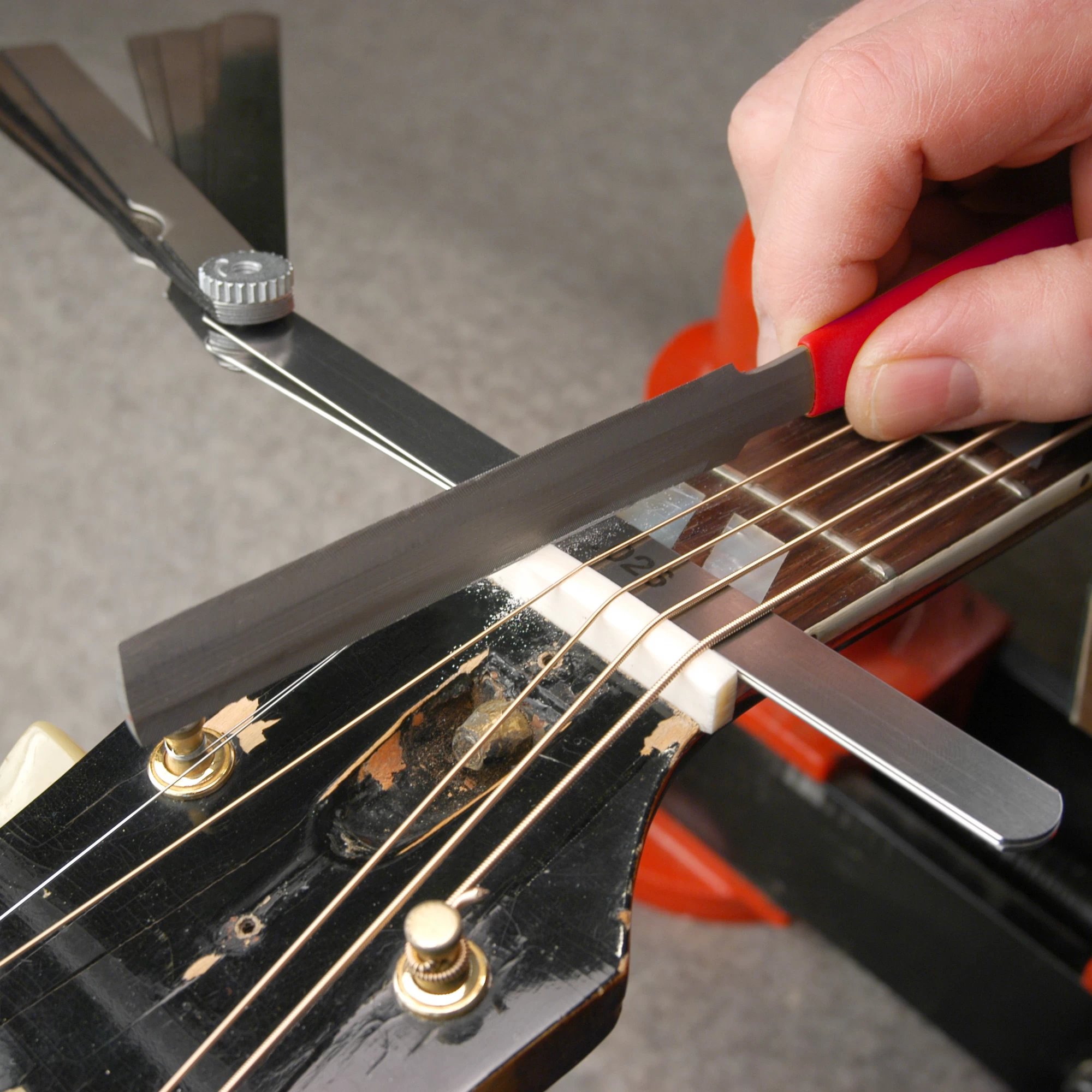 These gauges are also useful for checking string-to-fret clearances and fret slot width, for hardware installation work, and for setting up shop tools.