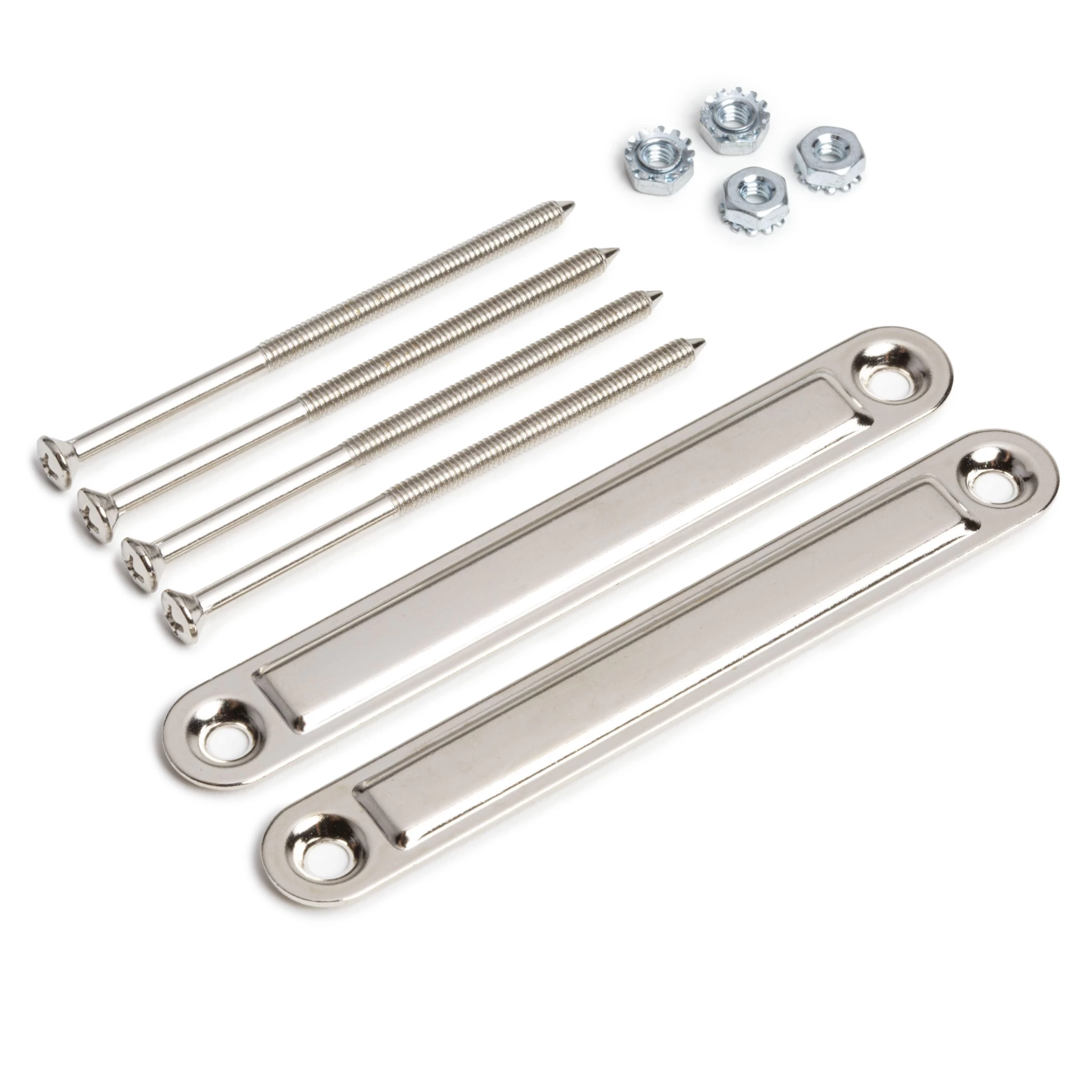 - Set of two 4 5/8″ chrome-plated chassis straps used for mounting chassis in cabinet