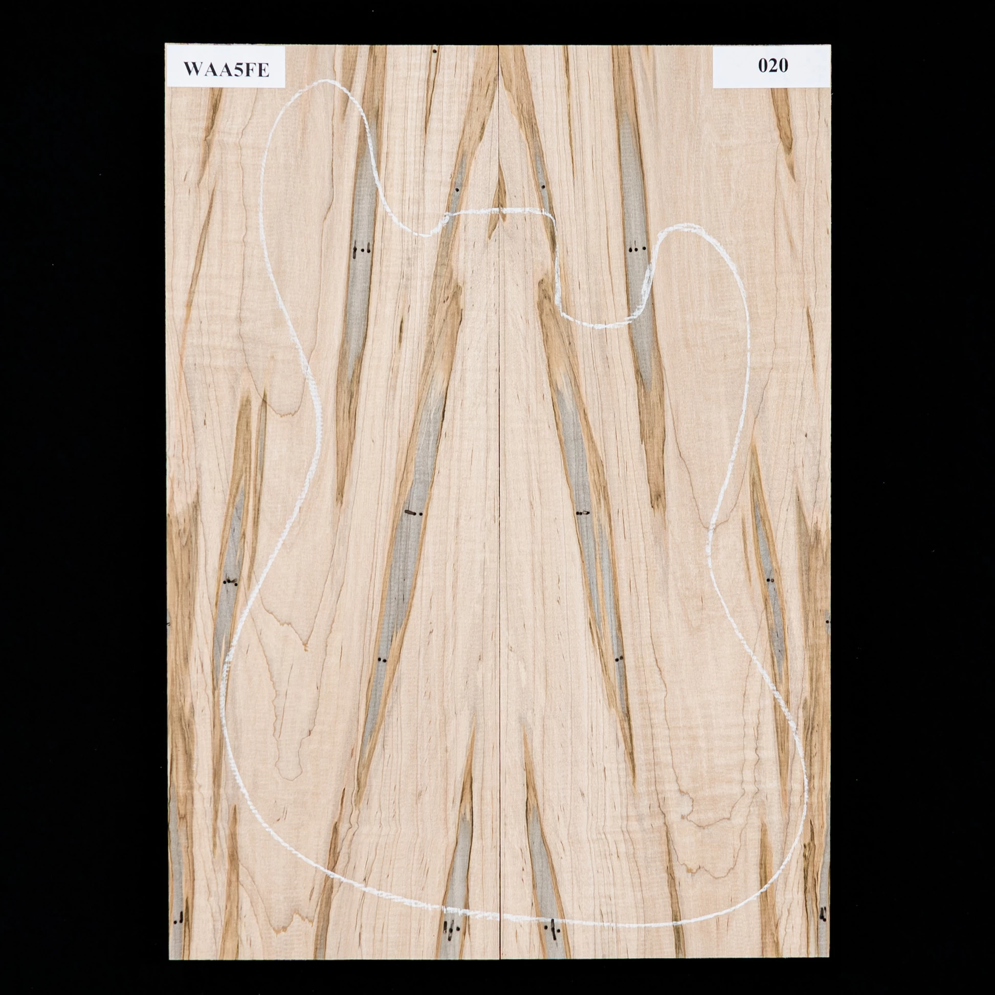 While Ambrosia Maple shares the same species with other well-known maple tonewoods, it’s the look that sets this wildly uncommon wood apart from quilted or flamed varieties. The one-of-a-kind patterning is the result of tunneling by tiny Ambrosia Beetles. Fungus that grows in the tunnels causes beautiful streaks of blue, gray, and brown. The beetles and fungus don’t affect the structural integrity of the wood, and the drying process terminates any remaining beetles or fungus.