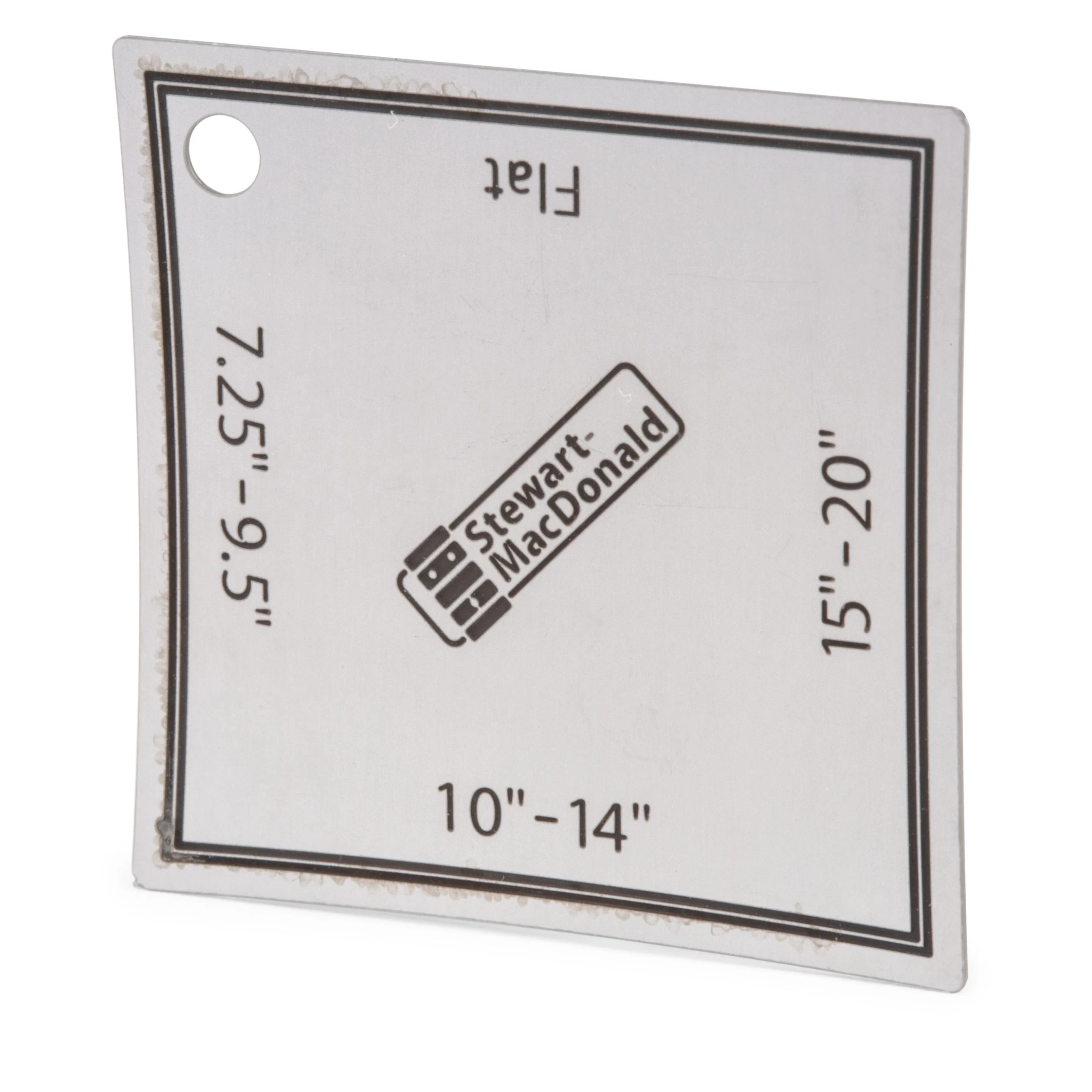 The gauge is machined from .018″ (.46mm) stainless steel for durability in the repair shop, and it fits into any fret slot. It’s a big help for refret jobs (it fits bound fingerboards), for setting the depth stop on our adjustable fret slotting saw, and for setting the cutting height of our fret slotting table saw blade. The non-glare etched surface is easy to read, and the curved edges fit all popular radiused and flat fretboards.