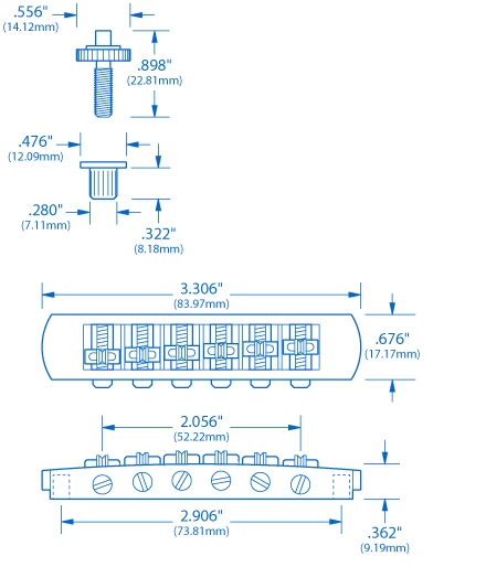 The only roller bridge that matches the 12″ radius of the Nashville Tune-O-Matic. Low-friction brass roller saddles let the strings move freely and return to accurate pitch.