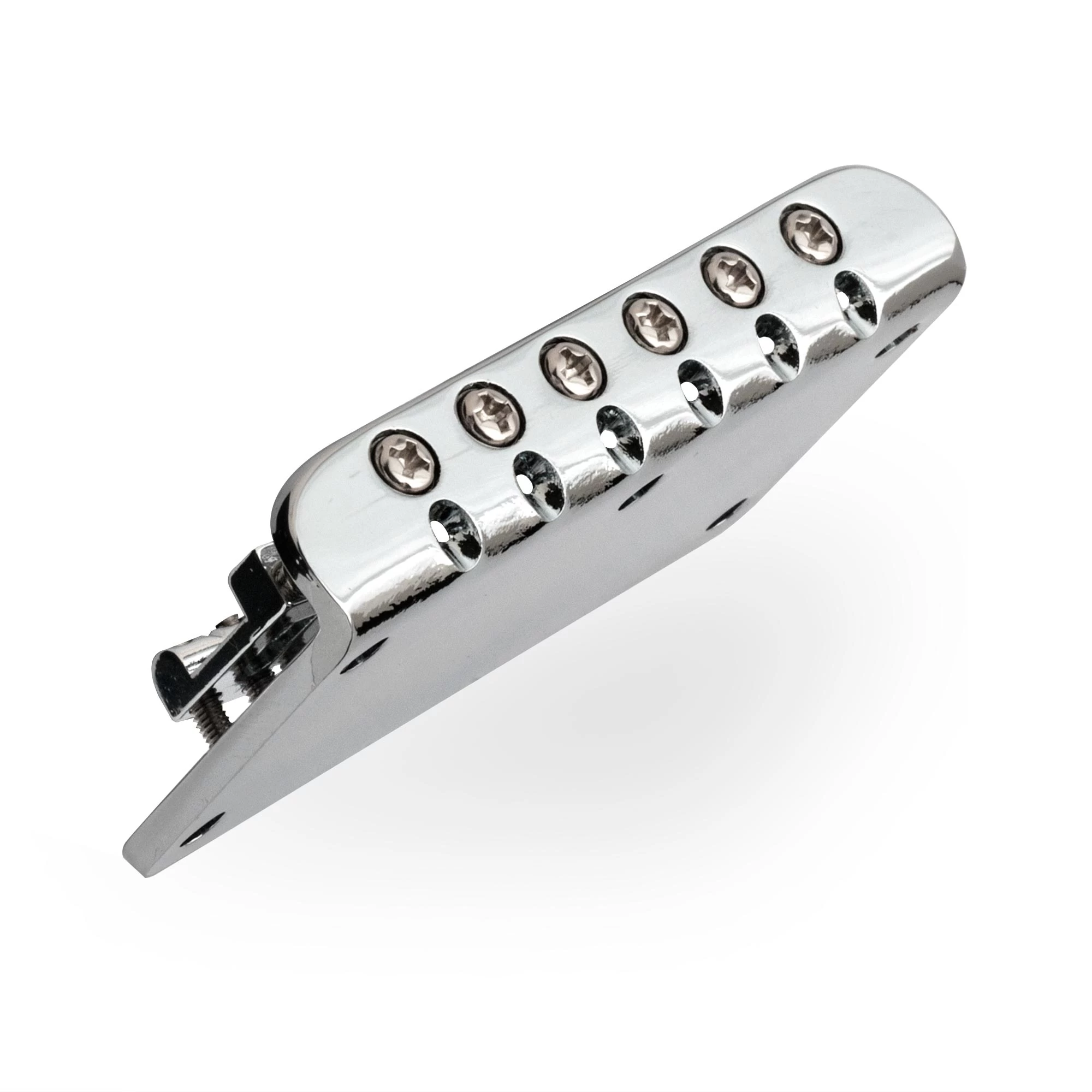 A quality adjustable solidbody bridge that doesn’t require through-body string mounting.