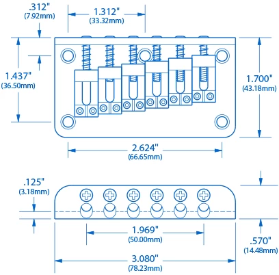 A well made bridge at a great price! Attach your strings through the holes in the steel base, below the intonation screws—no body routing required. An Allen wrench is included for adjusting individual saddle heights.