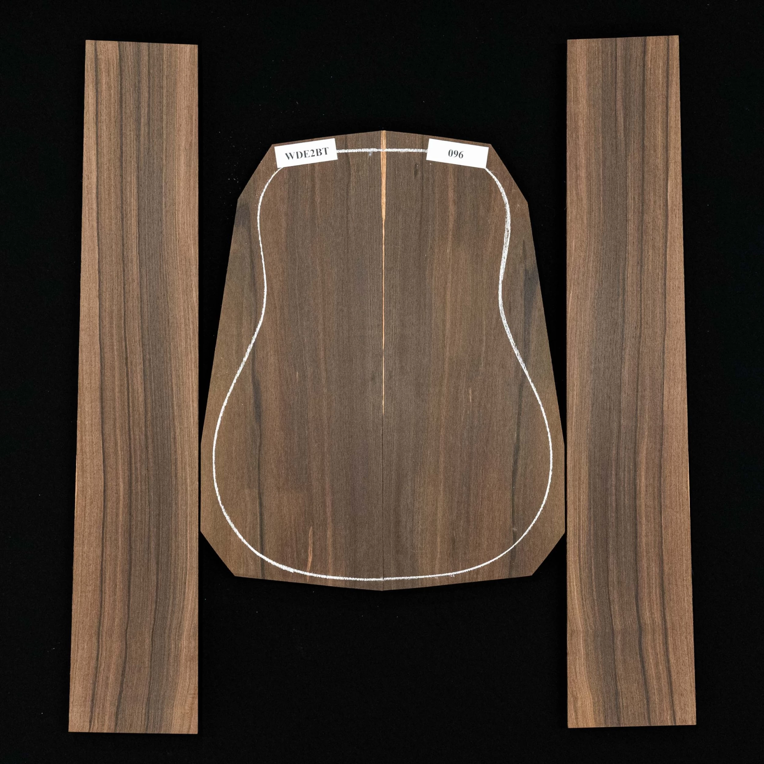Malaysian Blackwood is a member of the ebony family, but unlike other ebonies, it has extremely beautiful color variations that range from blacks, browns, greys and greens with striking sandy colored sap wood. Visually each set is unique and complex variegation is common in these sets.