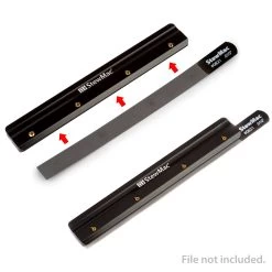 Simply slide your file into the backer, tighten the 4 hex screws, then file away! Switching out files is a breeze. No special tools needed, any 1/16″ hex key will work. Just loosen the screws, swap the files, tighten, and you’re ready to go.