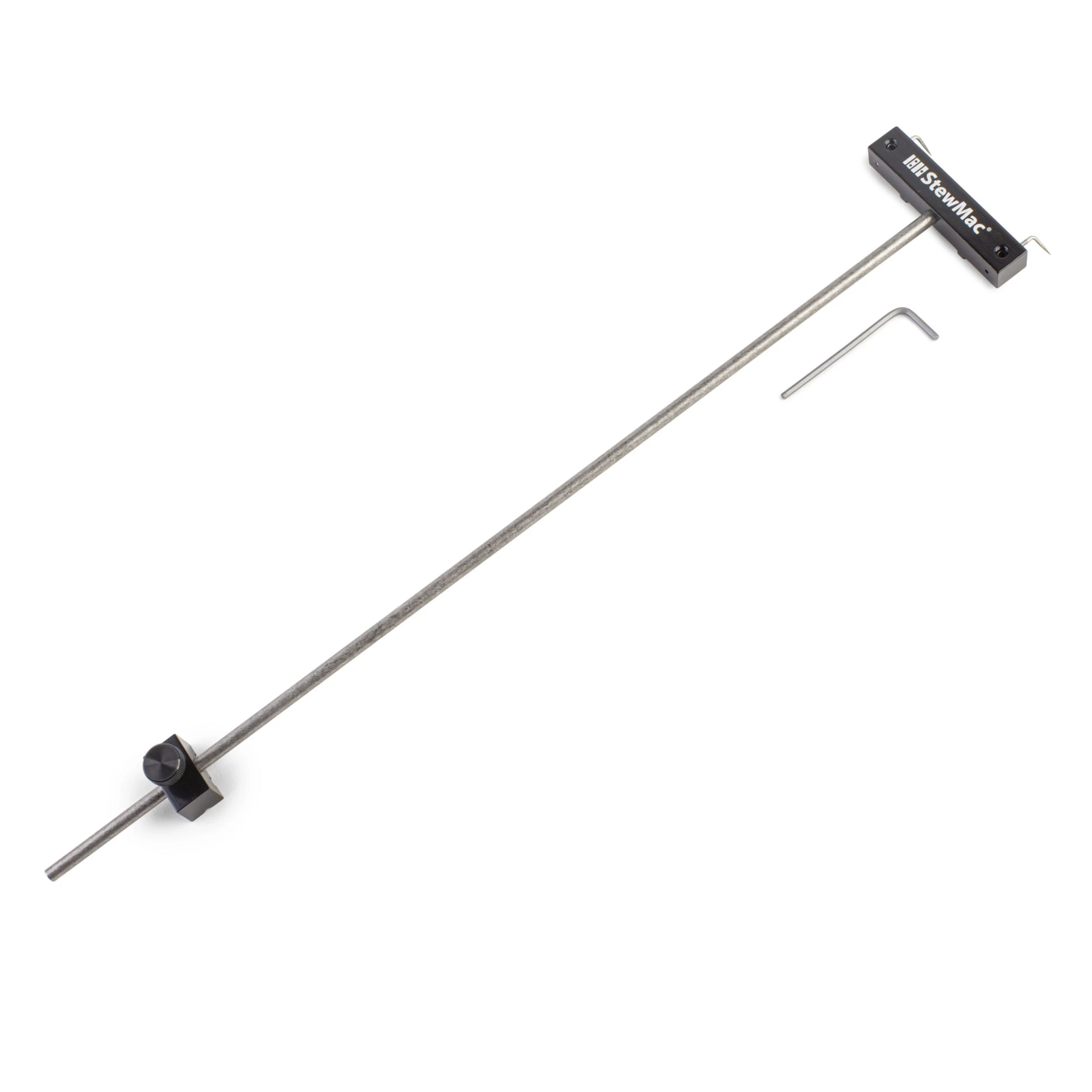 Quickly and accurately finds the correct location for a new acoustic guitar saddle slot, for positioning a new slotted bridge, or for checking the accuracy of an attached bridge and saddle. It adjusts for most acoustic guitar scale lengths up to 27″.