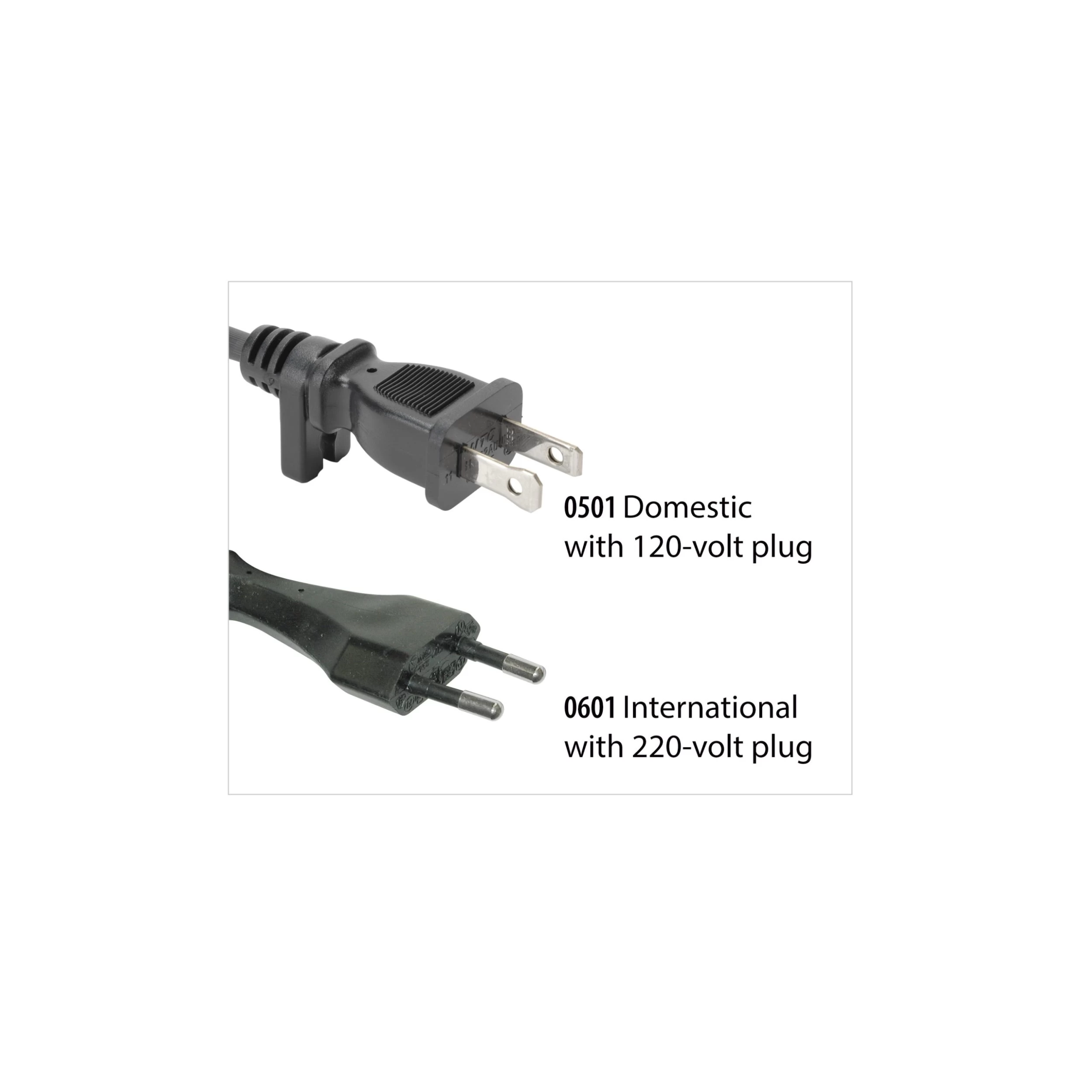 #0501 is a 110-volt AC electrical appliance, 60Hz. It has a U.S. standard Type A plug with two flat parallel prongs, ungrounded.