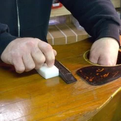 Removing an acoustic guitar’s bridge plate is tricky. After softening the glue with heat, it takes carefully controlled force to separate the plate from the delicate guitar top. At the same time, you must protect the top from cracking under pressure. Our Bridge Plate Chisel and Top Support Dolly work together to accomplish this.