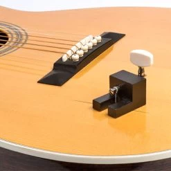 Our Crack Clamp uses a guitar tuner on a smooth polyethylene base. With strong thin wire, it winches the crack shut. The polyethylene won’t scratch guitars, and glue doesn’t stick to it.