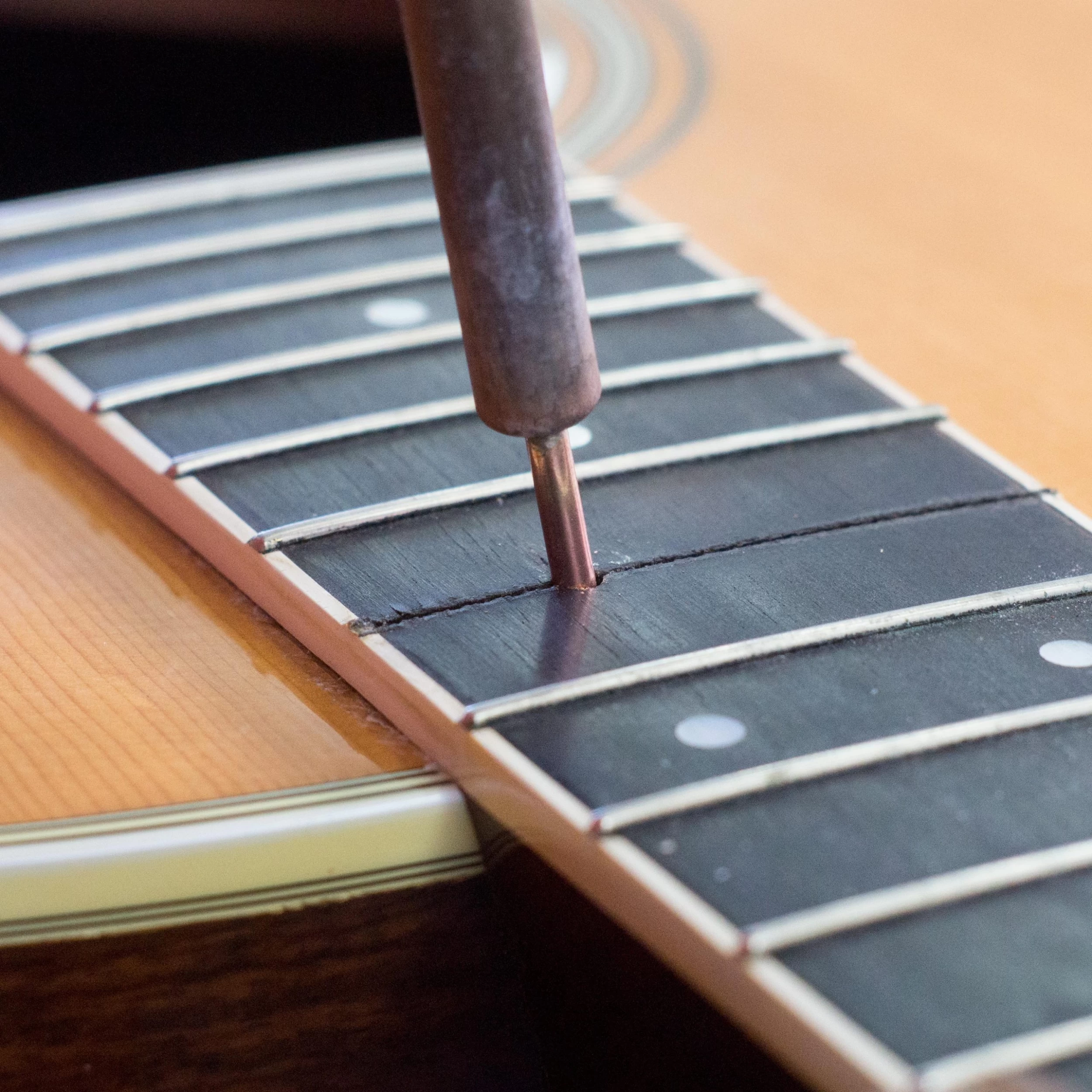 The HeatStick™ uses the heat of your soldering iron to soften the glue in a guitar’s neck joint for removing the neck.