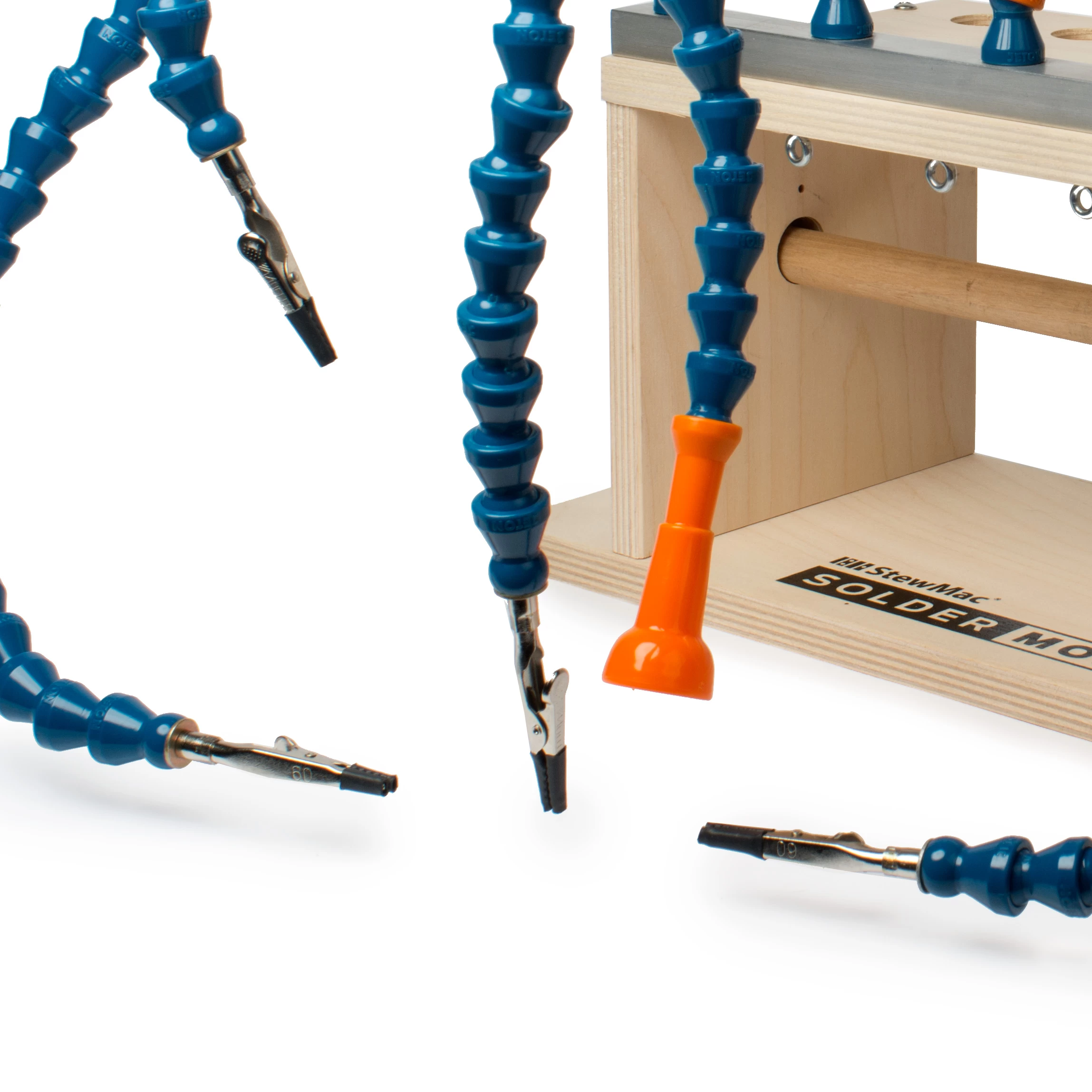 We developed the Monster for our own use, hand-soldering our Golden Age Pre-wired Pickguards and Wiring Harnesses. We needed to hold large and small items at any angle, without fussy adjustments. The octopus arms work great!
