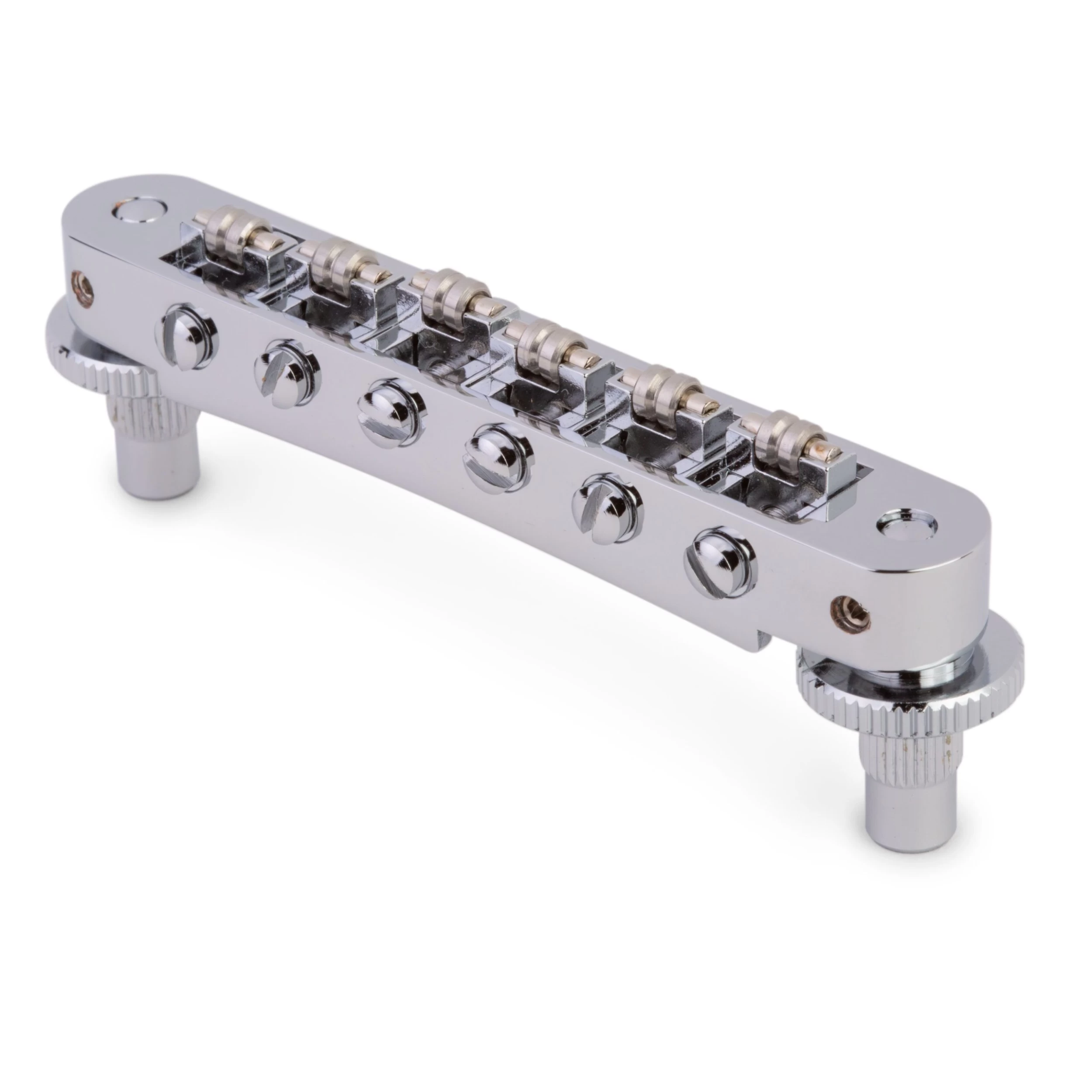 Upgrade to a roller bridge with TonePros. One of the electric guitar’s easiest upgrades, TonePros’ locking functionality instantly improves any stock bridge system. For most guitars, it’s a drop in replacement. The TonePros TP6R is designed for “Nashville”, US standard thread guitars and comes with roller saddles for instant installation with vibrato tailpieces.